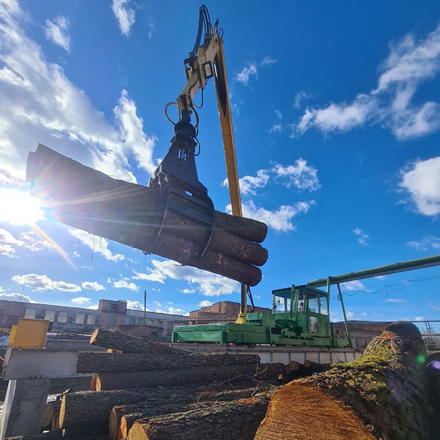 Після доставки лісоматеріалів на підприємство, вони розвантажуються до складу лісоматеріалів, де проходять процес сортування. Відсортовані лісоматеріали передаються до дільниці первинної обробки деревини (лісопильний цех), де вони проходять технологічні процеси переробки круглого лісу у пиломатеріали на обладнанні німецького, італійського, словенського та польського виробництва.